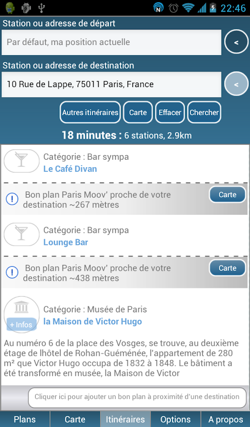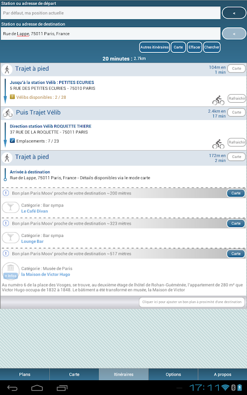 3. The default result of your search does not suit you? One of the lines of your route is currently out of service? There are more vélib available .. ! Very practical in daily application offers you the alternative routes to get to your destination.