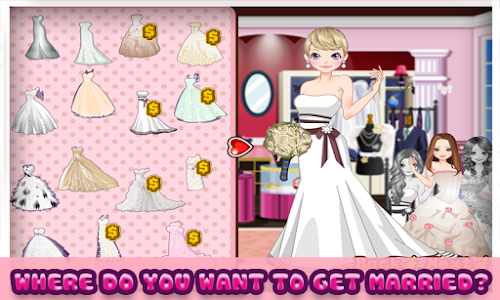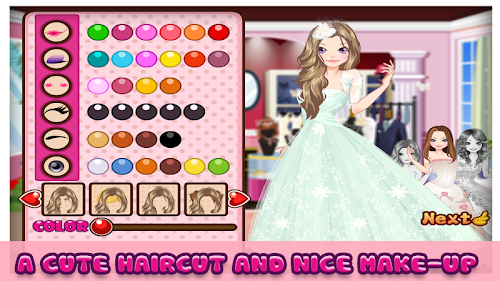 Play this wedding game with 3 girls, getting married. The 3 brides are looking for beautiful bridal make-up and the best hairdo from Paris. Afterward you will need to find clothes, shoes and bridal bouquets. The three brides want to fit all the dresses and are only happy when they find their dream dress. Of course you will try to find a bouquet for them! You can decorate the background with fitting items, like balloons and a big wedding cake from Paris. Post the best wedding picture on your Facebook!