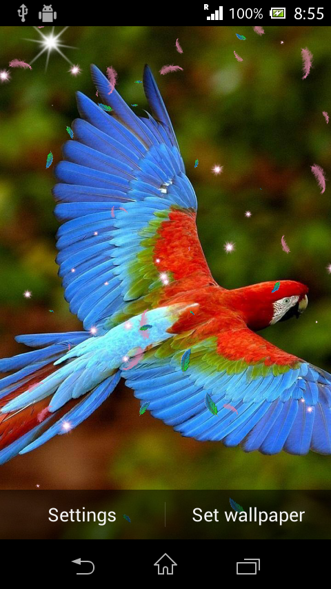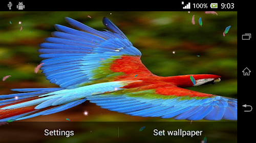 "Parrot Live Wallpaper" app contains multiple parrot wallpaper and you can easily control the wings,Snow animation speed by setting options. choose various type heart .move up and down the animation.