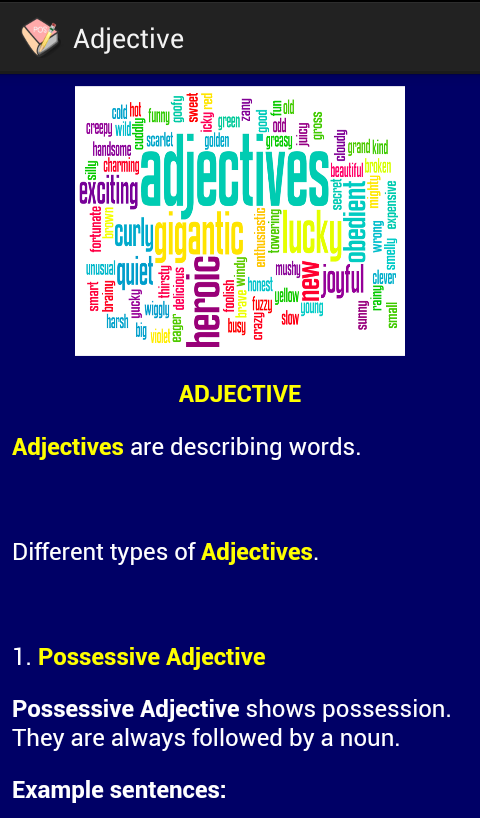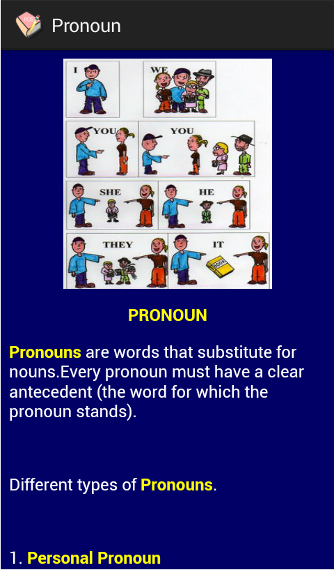 Parts of Speech is a simple and easy to use reference app on English language's Parts of Speech.