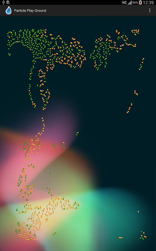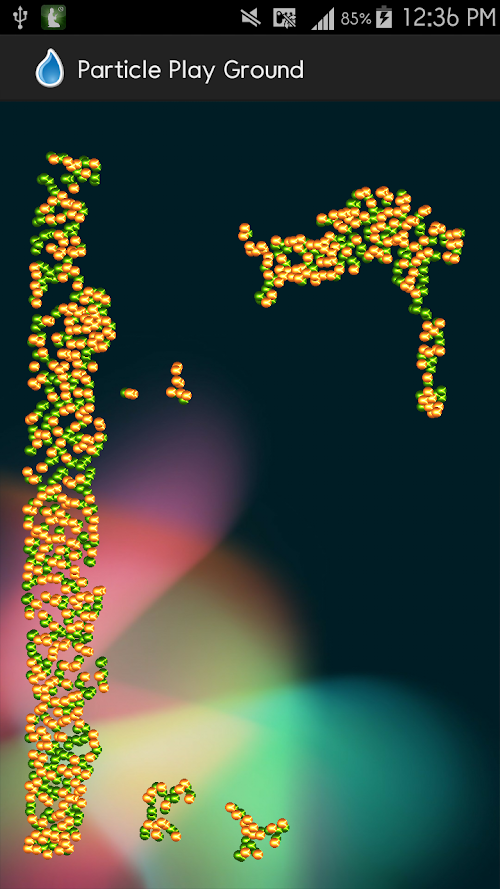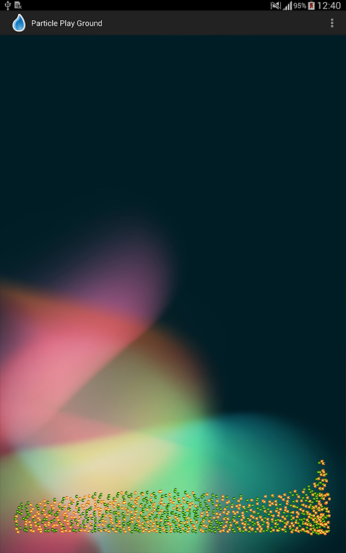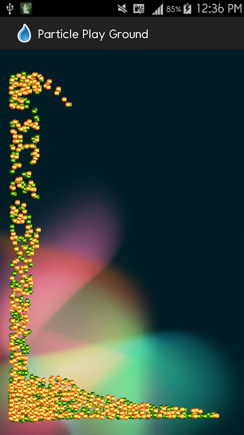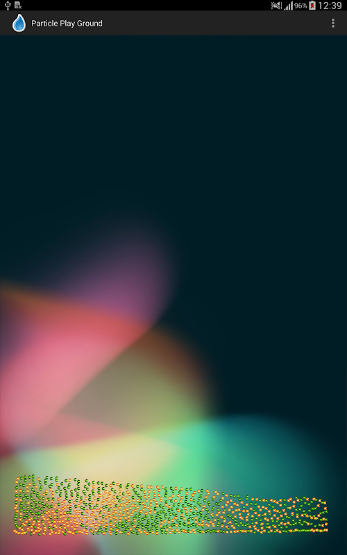 This application simulates liquid particle. The particle reacts to gravity and on screen touches. Play with these particles and have fun!