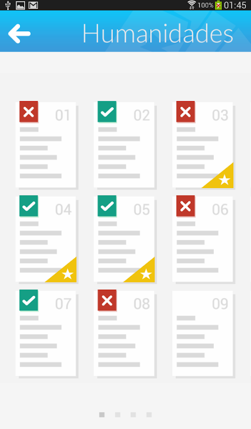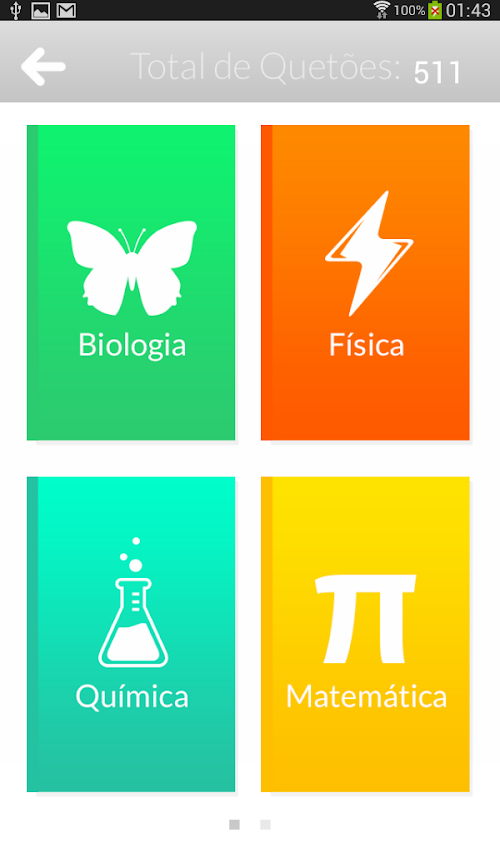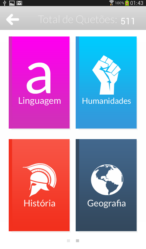 - Questões divididas em 8 matérias, onde é possível acessá-las individualmente.