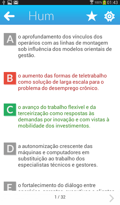 - Opção de sinalizar questões, para facilitar o acesso individual.