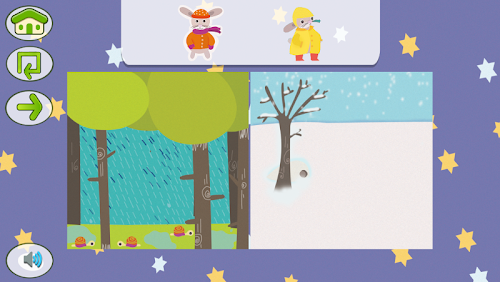 Dans chaque univers, l’enfant accède à des activités en découvrant les animaux cachés.