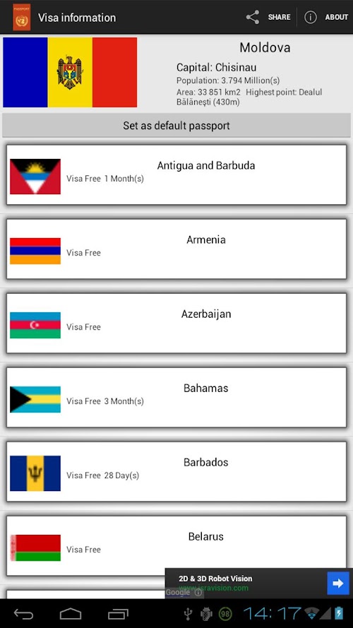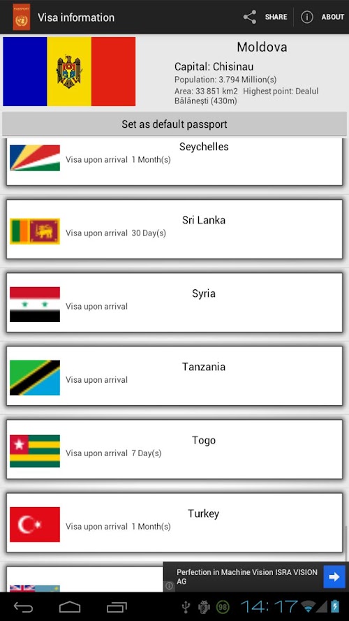 This version of Passport & Visa Android App comes with one universal variant which will work on all the Android devices.