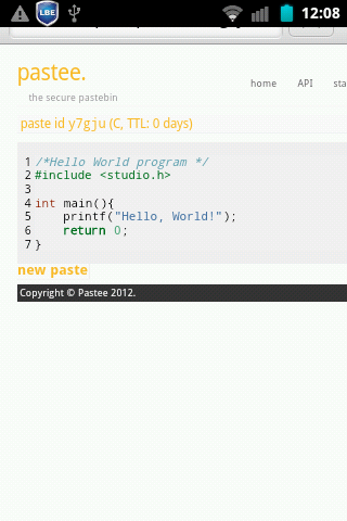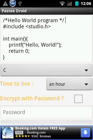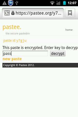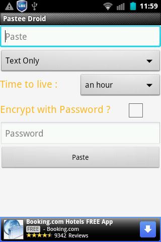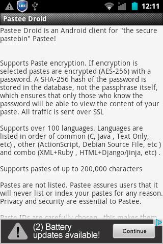 Pastee Droid is an Android client for "the secure pastebin" Pastee!