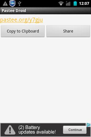 Pastee Droid also supports URL-shortening .Just paste a URL and it will be shortened .