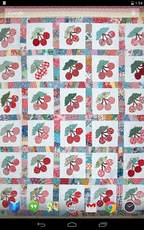 No quilts were patched in the making of this app. Select text from Wikipedia, which does not endorse this product. Licensed under the creative commons (creativecommons.org/licenses/by/3.0/). Text at wikipedia.org/wiki/Live_Wallpaper and wikipedia.org/wiki/Quilt.