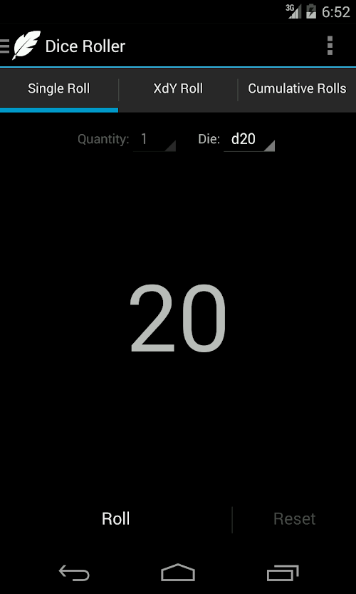 - Emergency virtual dice set (for when you forget your dice set at home!)
