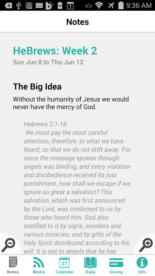 - Sermon notes have never been this convenient! With a single button you will access the current sermon and from there you can take notes on any note or verse and then email the notes when you are done.