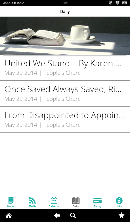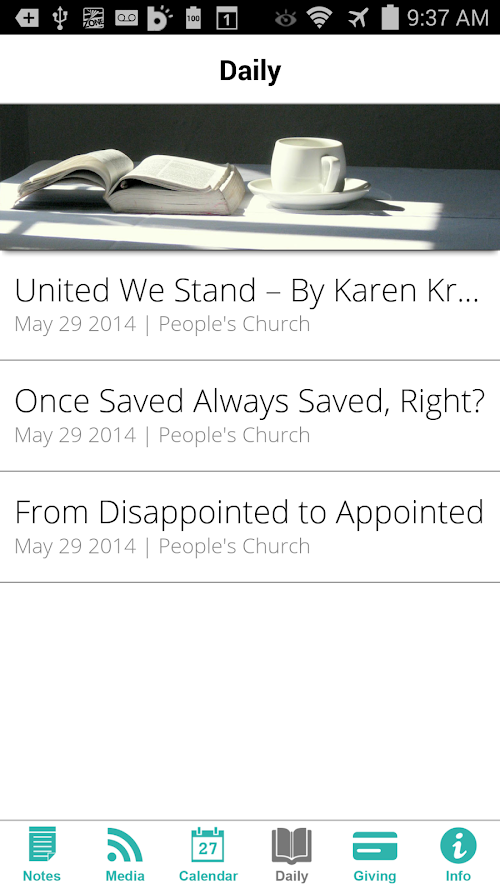 Welcome to the official People's Church Android app. The app compliments many things that People's Church has to offer: