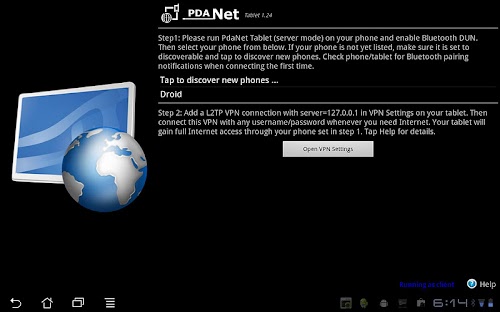 PdaNet Tablet app allows you to get Internet access on an Android tablet through Bluetooth connection to an Android phone. Please read *limitations* below.