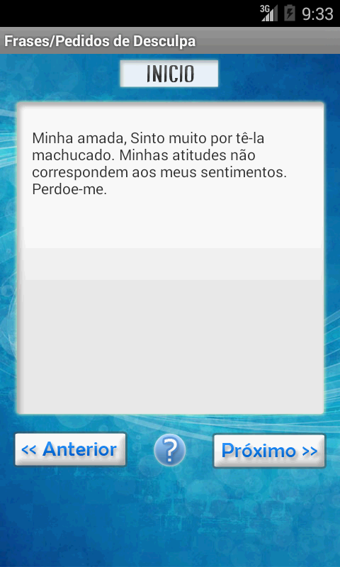 "Minha amada, Sinto muito por tê-la machucado. Minhas atitudes não correspondem aos meus sentimentos. Perdoe-me.",