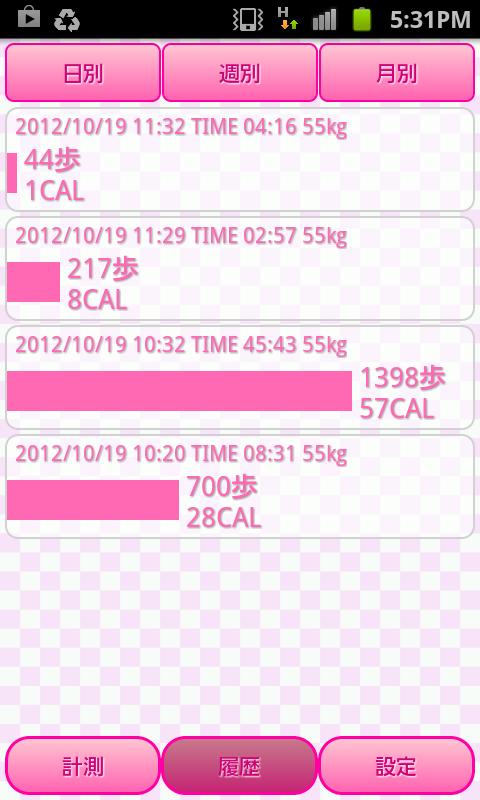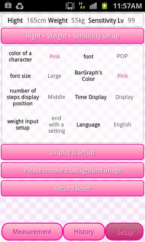 2012/10/05 Ver1.1.4 fixed the bug that the text color you set are not reflected in the data part of the history pedometer.