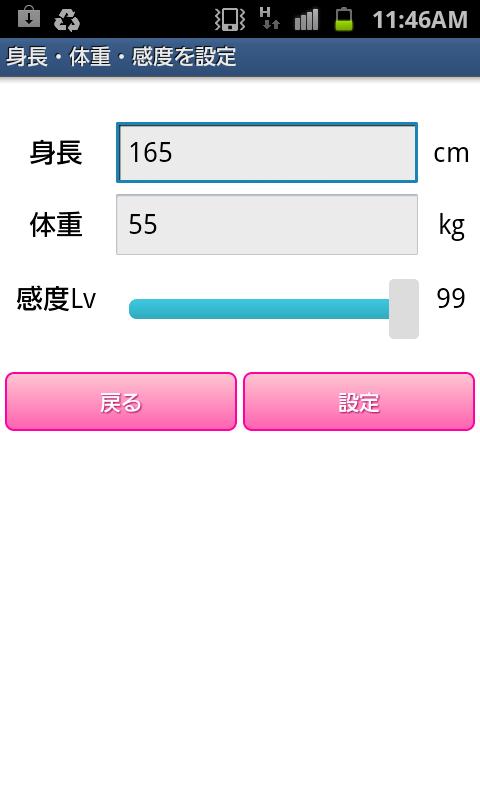 →Can be set from within the configuration screen "Set the height and weight and sensitivity."