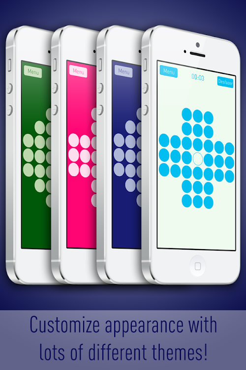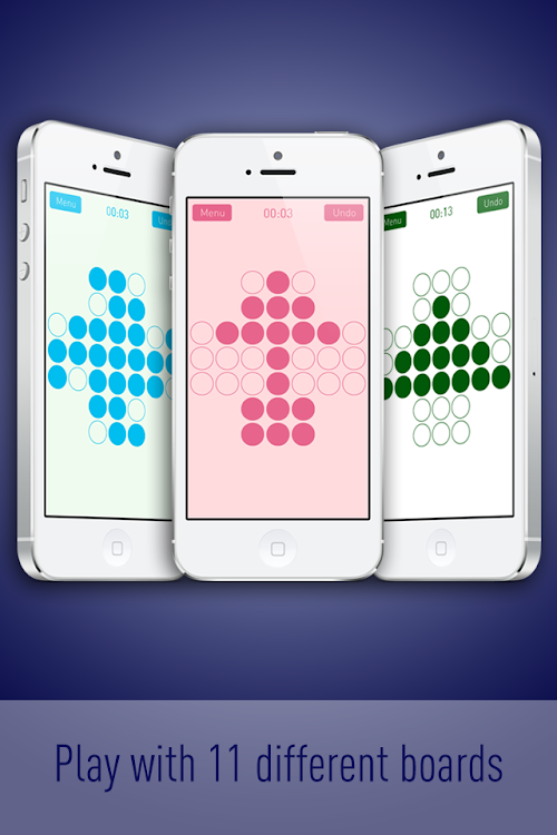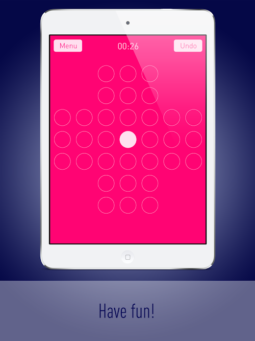 The famous board game Peg Solitaire in your Android device. It is a board game for one player involving movement of pegs on a board with holes. All you have to do is try to leave just one peg in the board.