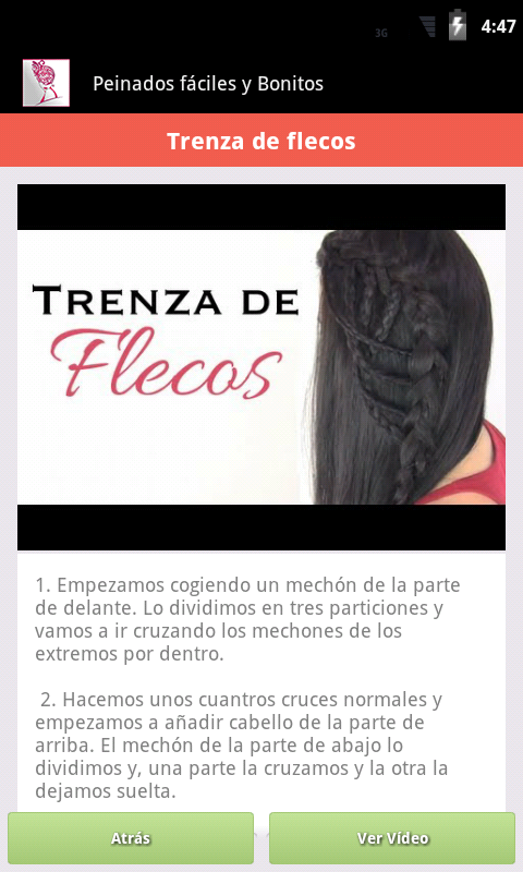 Y es más, con esta completa aplicación podrás hacerlo tu misma. Ya que para cada peinado se describe paso a paso como realizarlo y viene tutorizado con un vídeo para que te sea más fácil realizar ese peinado para una ocasión especial.
