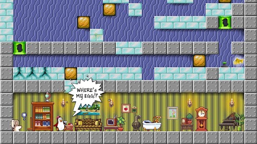 Help Mr. Penguin by guiding him with his egg to Ms. Penguin. Each level is a challenging retro style platform puzzle with amazing enemies and problems. Cut through ice and guide your precious egg through increasingly challenging scenarios! And don't let your egg drop too hard!