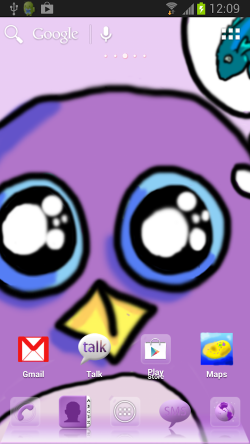 Theme with hand drawn penguin. Wallpaper is a purple penguin with big eyes. Background of the main application menu is also a big purple penguin. Each icon has a transparent background purple tile. Major icons have been replaced with purple. If you like drawings, cartoons and animated films this application you might enjoy. This product is directed primarily to girls and children. If you like you might also like our other applications with the same or a similar theme. This product is free of charge.