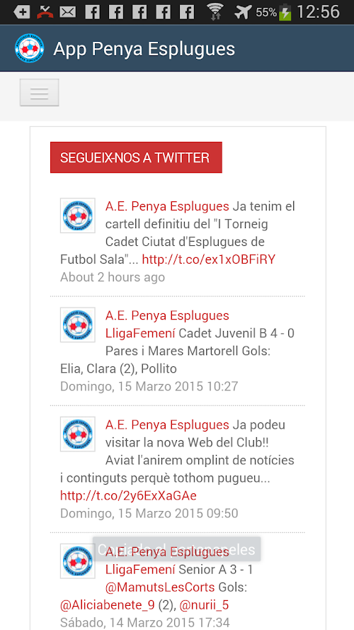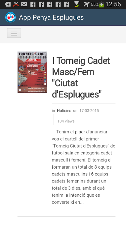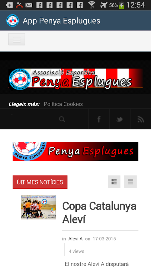 Aplicación oficial del Club Penya Esplugues para consultar los horarios de los partidos, los resultados y las crónicas. Podrás consultar el palmarés de los equipos y los resultados semana a semana, así como las noticias más relevantes del club.Official application of Club Penya Esplugues to timetables matches, results and chronic. You can check palmares of equipment and the results every week, as well as the most relevant news of the club.