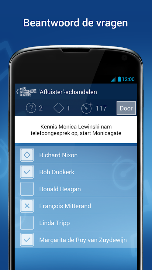 De Per Seconde Wijzer is dé spelsensatie van Nederland! Met Per Seconde Wijzer waan je je kandidaat in het gelijknamige televisieprogramma van BNNVARA, waar al decennia lang miljoenen mensen naar kijken. Speel de soloversie en probeer in de ranglijst van 50 beste spelers te komen of speel tegen een vriend of willekeurige tegenstander en bepaal in een sprint over maximaal drie vragen wie de beste is.