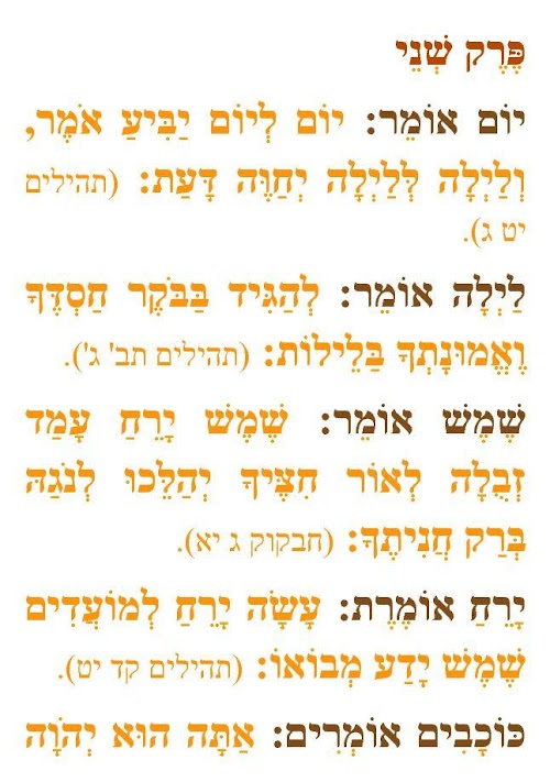 Perek Shira capital letters. Especially suited for small devices or short-sighted. Read vertically.