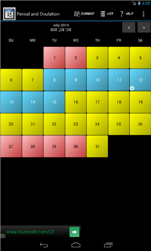 Warning: Period and Ovulation Tracker is not recommended to use this calendar to avoid pregnancy! There are more accurate methods, like measuring the basal body temperature.
