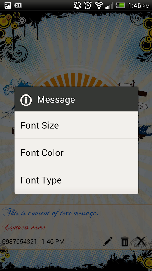 Personalize SMS will show whole text message content when you receive a text message. Personalize SMS can let you edit font size, font color and font type of text message content, contact's name, phone number.