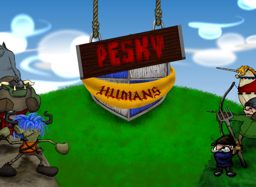 Build your base, build your army, and destroy those pesky humans that are stopping your evil kingdom from growing! Build your Orcs raiding parties to raid the towns of the humans and burn there little villages to the ground to make space for your awesome orc empire. As an orc warlord it’s your task to guide your forces of evil to victory! Pesky humans is a fast passing action strategy game that will keep you busy for some time. The humans control there empire from the sky fortress that is located in the sky mountains.