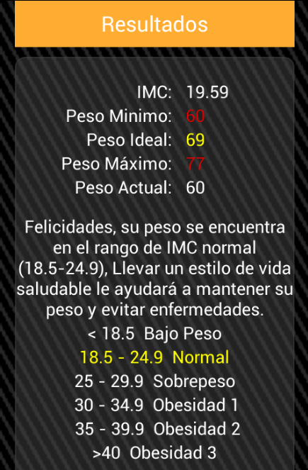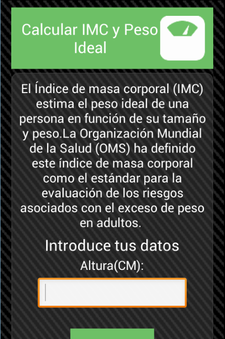 // Envía sugerencias a: [email protected] Weight is an application that will help you achieve your ideal weight, offering a selection of diets, for each day of the week and in line with your goal, whether to lose weight, maintain your weight or overweight have a perfect diet for weight you!, you can also track your weight out and you can update it whenever you want, if what interests you is to measure your health, you can analyze your weight and get the measures and recommendations to achieve your Perfect Weight!