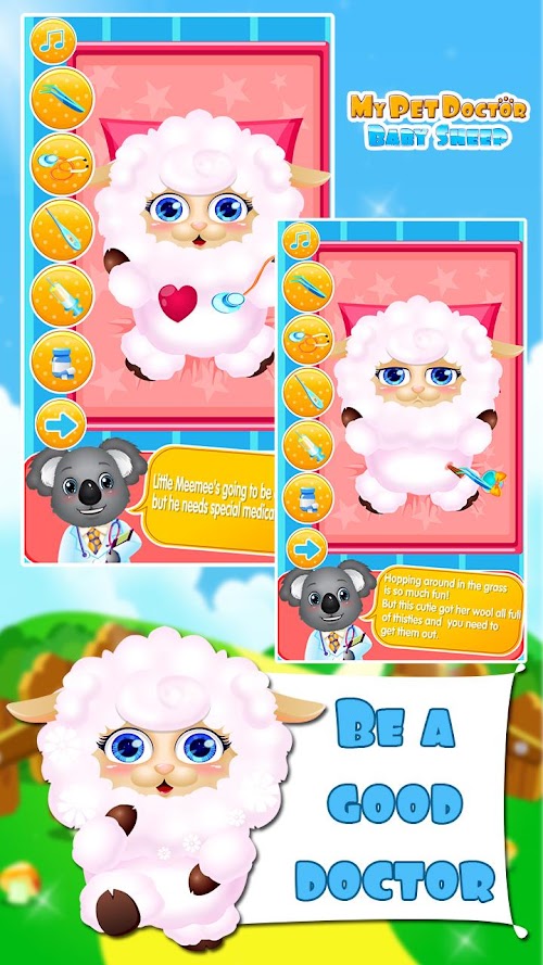 Super fun and easy to play, this new game is perfect for all the kids that enjoy taking care of a cute and fluffy pet. The little ones can learn how to treat the adorable baby sheep, by folllowing the steps and using the medical instruments. Getting the cute character squeaky clean is also a must, and then the awesome dress up session can begin.