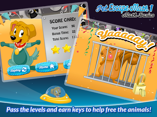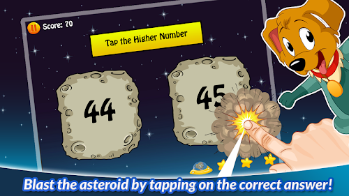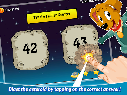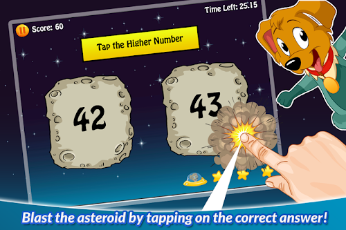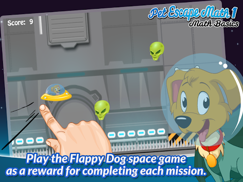 Pets on Earth have been kidnapped and taken into outer space to be made as space pets for the aliens! Your task is to blast away asteroids containing the right answers to math problems. The more levels you complete, the more keys you earn. Use these keys to unlock the cages and help free the pets and return them back to Earth. For each mission that you complete, you get a fun bonus round where you help Polly the Space Puppy fly through space to earn extra points.