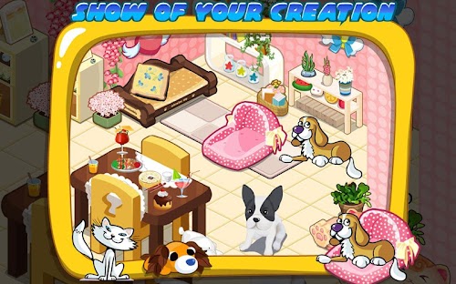 Customize every element of your pet house: furniture, decor, food, pets and more.