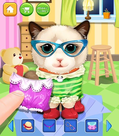 It's a beauty spa for puppies and kitties! Pet Playground - Beauty Salon puts you in charge of a salon that caters to cute pets. Have you ever wanted to put your pet puppy in a cute dress? How about play dress up with a kitty? It's easy and fun to dress, clean and play with many different kinds of pets!