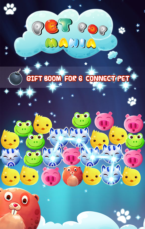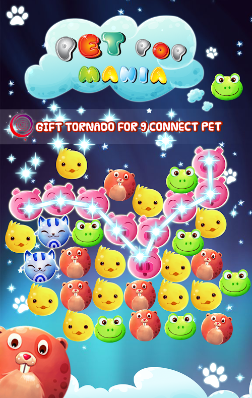 + Connect a chain of 8 pets to create one lightning bolt on the screen, have a blast for all the pets stick the lightning.