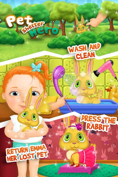 Pick a pet you want to save (Kitty, Doggie, Rabbit or Turtle) and enjoy all game features:
