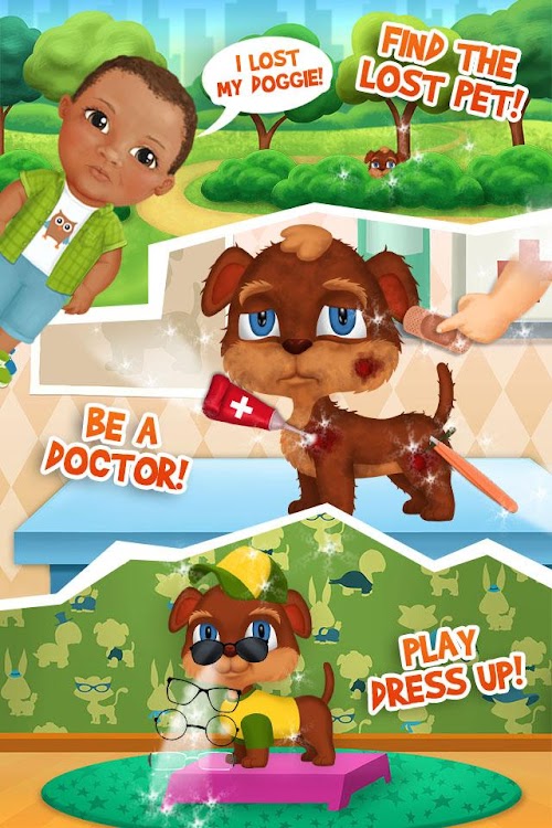 Oh no! Four little pets are missing and their owners are really sad. Play the Pet Shelter Hero and hurry to the rescue! Drive Pet Shelter car and find the lost pets. Be a pet vet and treat pets, shower them and be their pet dentist when you clean their teeth. Return pets to their owners and make them happy again!