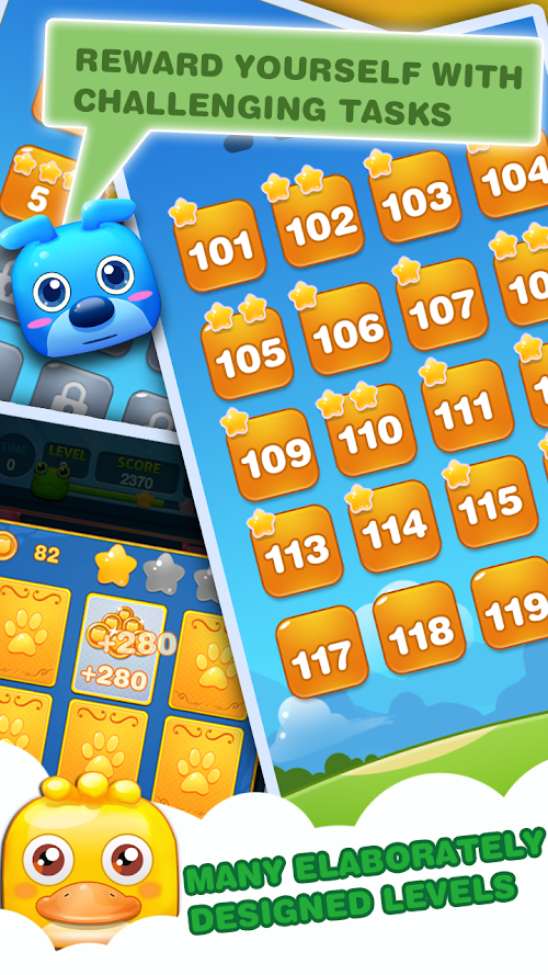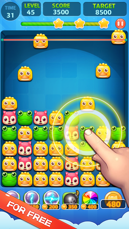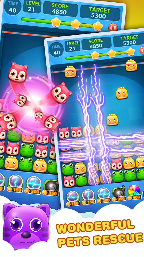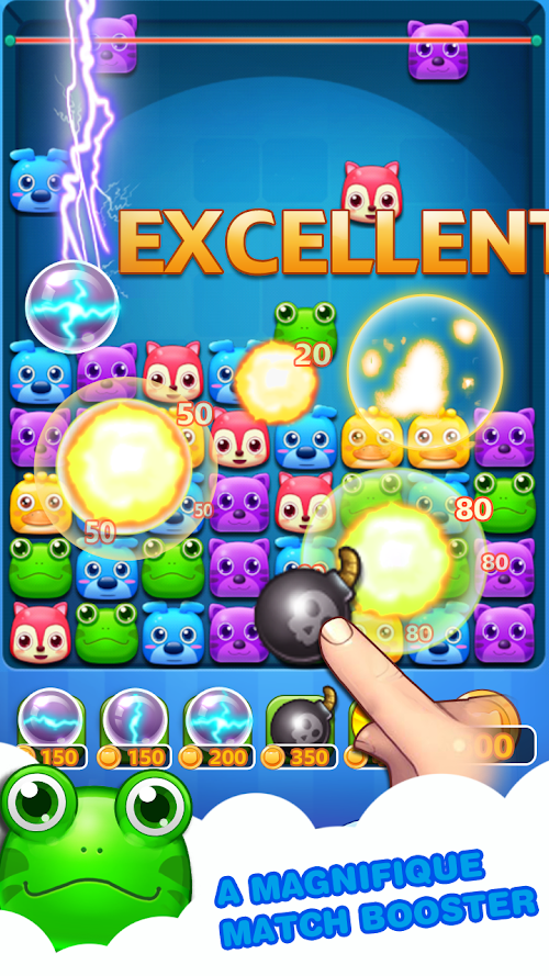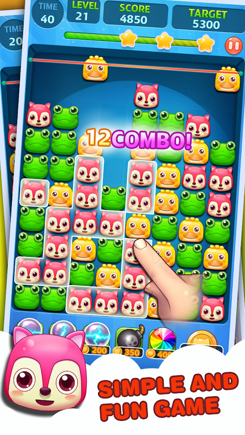 One tap on two or more adjacent same pets will burst them, create new high score is game winner!