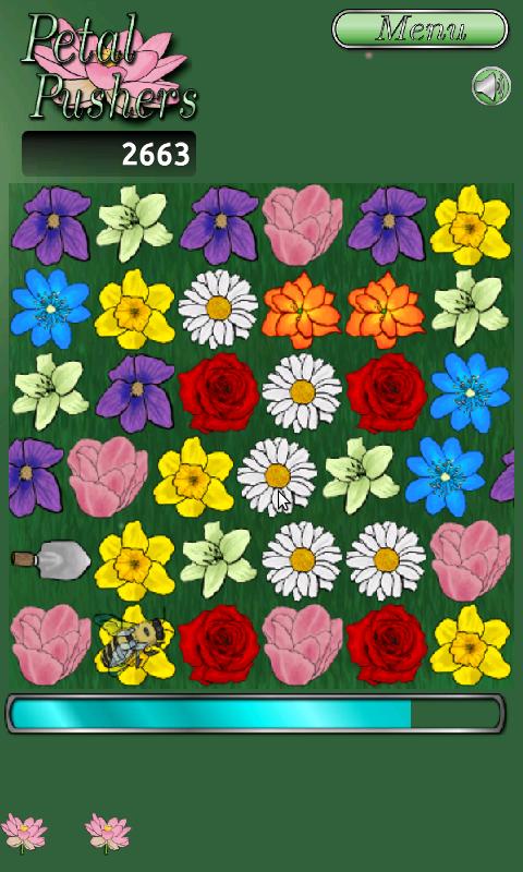 Matching five or more flowers of the same type will reward you with a trowel which can be used to plough through a row or column. As your score increases, honeybees may land on your flowers, preventing you from sliding their rows or columns.