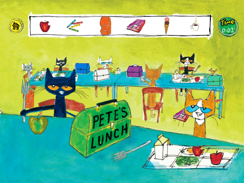 The bestselling and beloved Pete the Cat series now includes this groovy new app in which kids can play a fun hidden object game as Pete travels through his school looking for his guitar. The objects change each time you visit the classroom, the schoolyard, the cafeteria, or the school bus for endless fun! And best of all, after the first time you play, you unlock the School Jam game and Free Play mode. In the School Jam game, tap the strings of the guitar when prompted, a la Guitar Hero, while Pete and the Cool Cats play Rocking in My School Shoes. In Free Play mode, play Pete's guitar and watch him strum along in 3D!