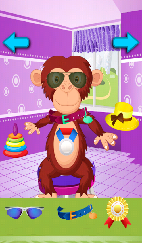 Dear girls, this is a game animal care. In this game, you sport must wash the animals, feed them, put them to sleep to rest, to be happy and rested, and eventually you gotta dress the most beautiful clothes for animals. In the monkey spa will have to take care that we put in the tub and we will wash your hair with shampoo, a brush will give animal fur and we will remove the water. After I finished bathing session, we will take a glass of milk and because we border is still chicken and needs to grow big and beautiful. After I gave him to eat, monkey Our felt the need to lie less in bed. I noticed that when our animation to Terzic was more relaxed and happier and had mood to play, which is why we called on us to help her to play, not to be alone. Please help us to take care of the monkey to feed and play with it. Have fun.