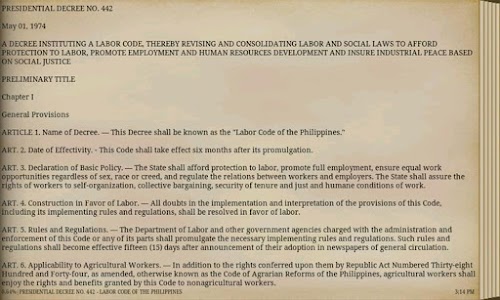 PRESIDENTIAL DECREE NO. 442 - LABOR CODE OF THE PHILIPPINES
