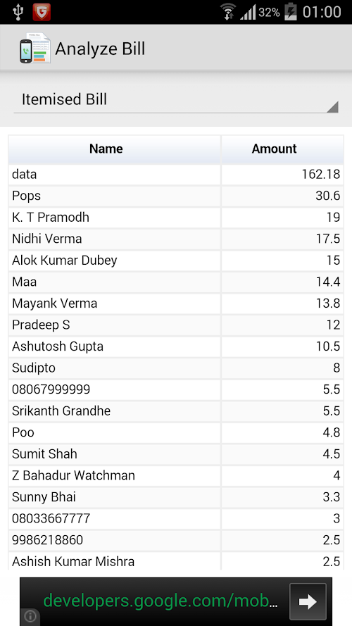 About Phone Bill Analyzer Android App