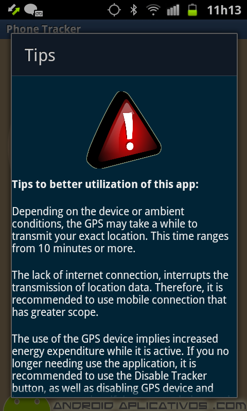 - Assist in locating stolen devices: If your phone is stolen with the tracker enabled and emitting location correctly, you can track it via another Android phone (that also has the application installed) by the function "Find a phone."