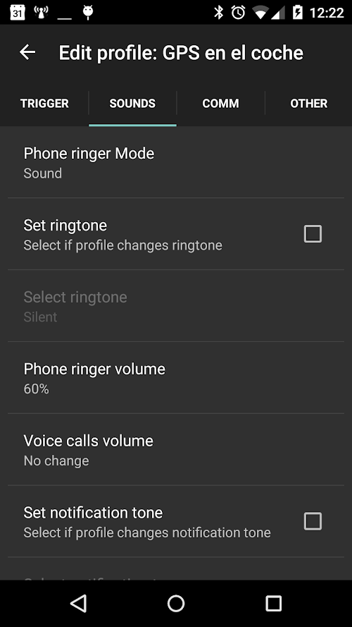 Connections. Profiles can be automatically triggered when the device connections change, inluding wifi, power, bluetooth, NFC tags, etc.