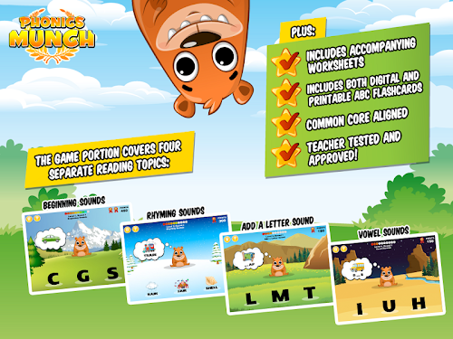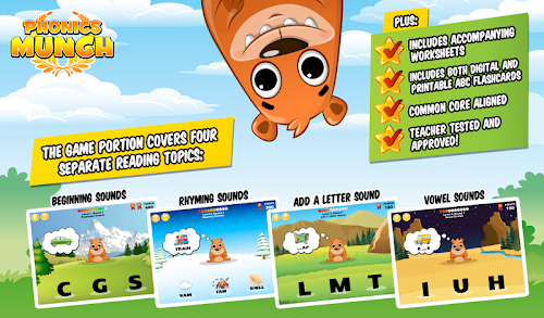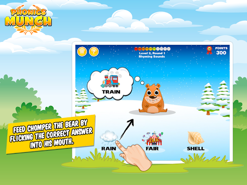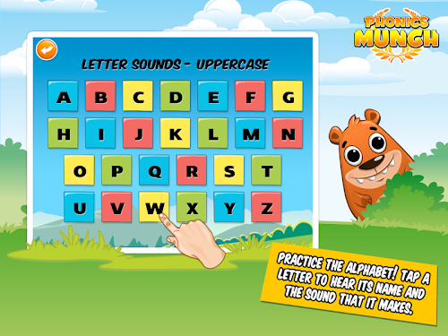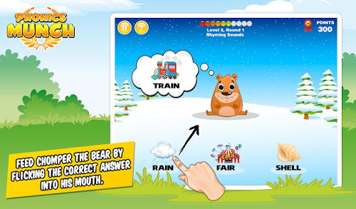 Chomper the bear is on the lookout for letters and pictures to eat. Help feed Chomper while learning the phonics basics!