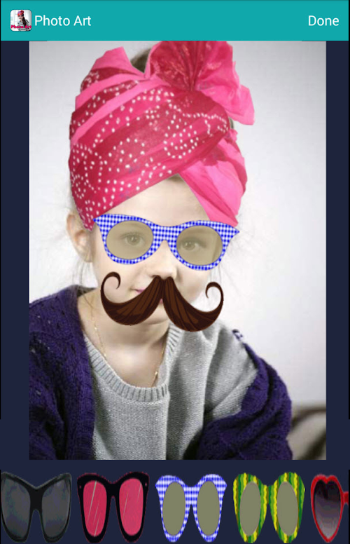 App funny, it's a new generation with cute stickers. The choice, be it a hat, glasses mustache, which have a wide selection of over 150+ with Photo Art and Photo Frame with cute pictures to choose from you can download for free. And easy to use