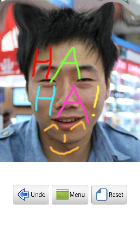 Select your friend's photo from gallery or take photo via camera ,then use one finger to drag his/her face.