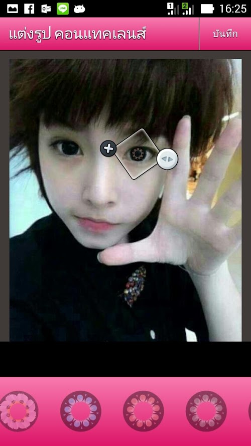 - เลือกรูปจากอุปกาณ์มือถือของคุณ ระบบจะพาไปสู่การแก้ไขภาพ เลือกเลนส์เพื่อตกแต่งดวงตา