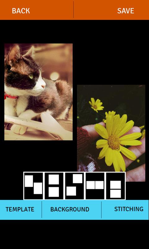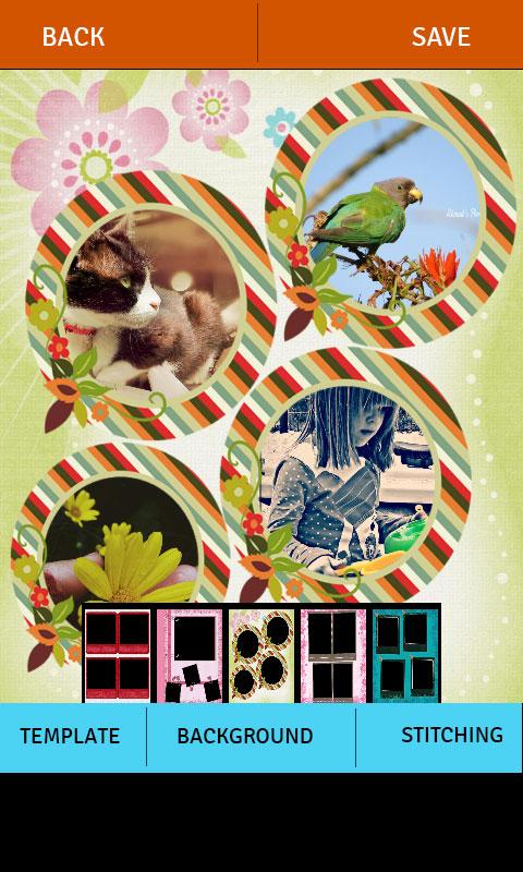 This photo Editor contain feature Collage. Photo Collage easy way to collect photos to one pictures and choose the effects you like such as templates, backgrounds and stitching. You can use this app to merge lots of photos into one photo through a very simple operation. Selecting 2, 3, 4, 5 Photos. Collage appears depending on number of photos.Photo editor show many collages for each group of photo.